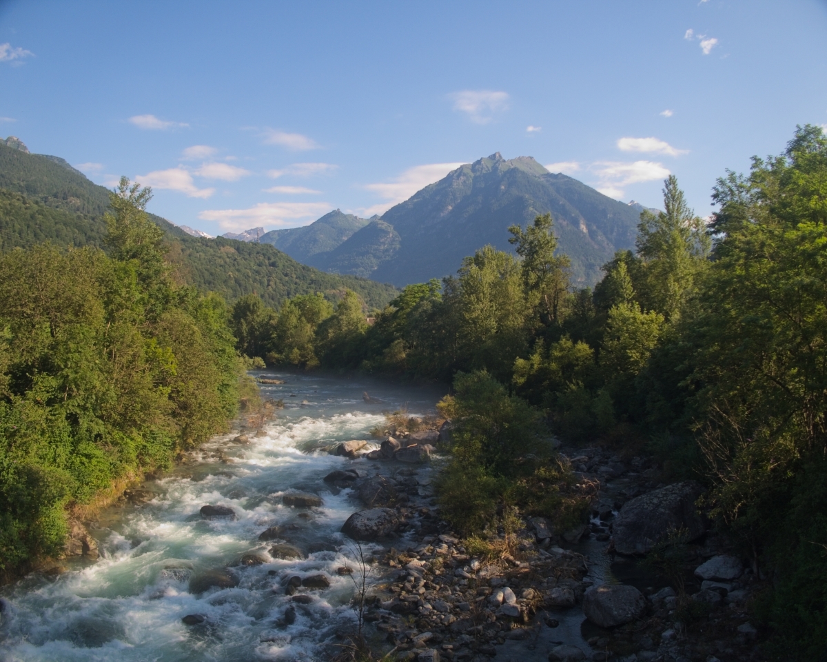 Všetky naše plány sú opäť v háji. Ja už vám ich radšej ani nebudem hovoriť. Skoro celé Gran Paradiso je pod snehom, ani GR 54, ktorú sme išli minulý rok v podobnom čase sa nedá ísť. V Novare si dáme kávu a prestupujeme na vlak do Turína. Jozef ešte preveruje či niektoré trasy, ktoré sme naplánovali sa dajú prejsť. Možno dva dni by sa nám podarili. Ja už nechcem ísť na preskáčku, tak ho presvedčím, aby sme išli na juh. V Turíne kupujeme ešte nejaké jedlo do cesty a pivo, ktoré si dávam dokonca aj ja. Namiesto Bussoleno sa vezieme ešte o zastávku ďalej, do Susa. V Susa je “príjemných” 30°C a poriadne dusno. Je 6 hodín a my by sme chceli prejsť ešte vertikálny kilometer, tak sa nezdržujeme. Ako náhle vstúpime do lesa, je trochu príjemnejšie, ale zasa viac komárov. Prechádzame cez dedinu Meana di Susa. Dosť to tu žije s Giro d’Italia.