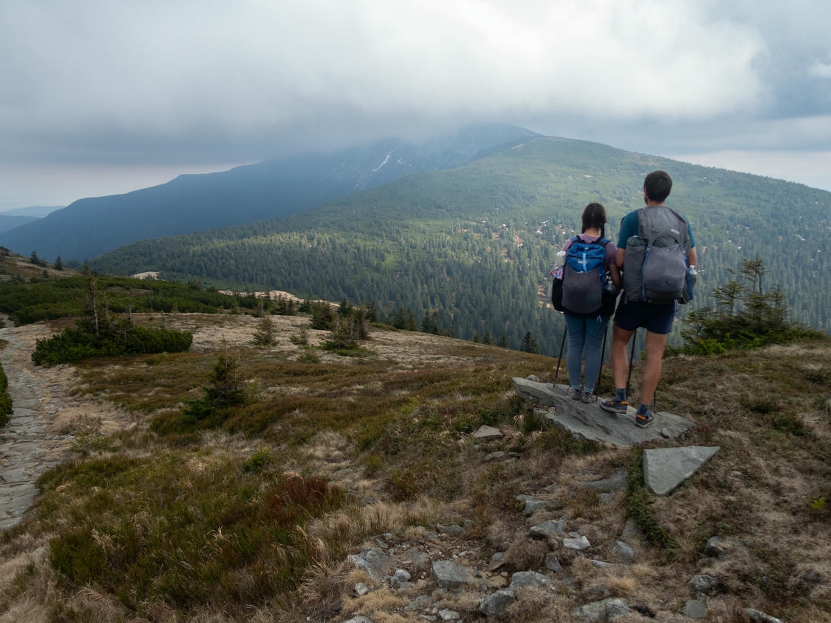 Prameň je také jazierko, z ktorého tečie trochu vody. Naberám pohárikom do vreca na vodu a filtrujem, Poliaci si naberajú rovno do fľašiek. Potom si robia srandu z baktérie ecoli či z tej vody niečo nedostanú. Presvedčím Jozefa, aby na obed urobil cestoviny. Ja som poriadne hladná po včerajšej ľahkej večeri a pred nami je ešte veľa stúpania. Tak teda varí cestoviny s tuniakom a aj čaj. Celkom dobre mi to padlo a pokračuje sa mi lepšie. Za chvíľu dôjdeme na najsevernejší bod Slovenska. Keby Jozefa neupozorním, tak si ani nevšimne.