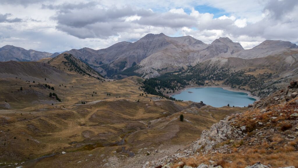 Už ledva prepletám nôžkami a každú chvíľu pozerám na hodinky. Pred pol 5 sme hore, dáme si po jednej mentoske a hneď sa dáme na zostup k jazeru Lac d’Allos. Začína snežiť! Zastavím sa a zhlboka sa nadýchnem, veru, aj vo vzduchu je cítiť sneh. To je riadna sranda. Otvorí sa nám výhľad na jazero, ktoré je najväčším vysokohorským prírodným jazerom v Európe.