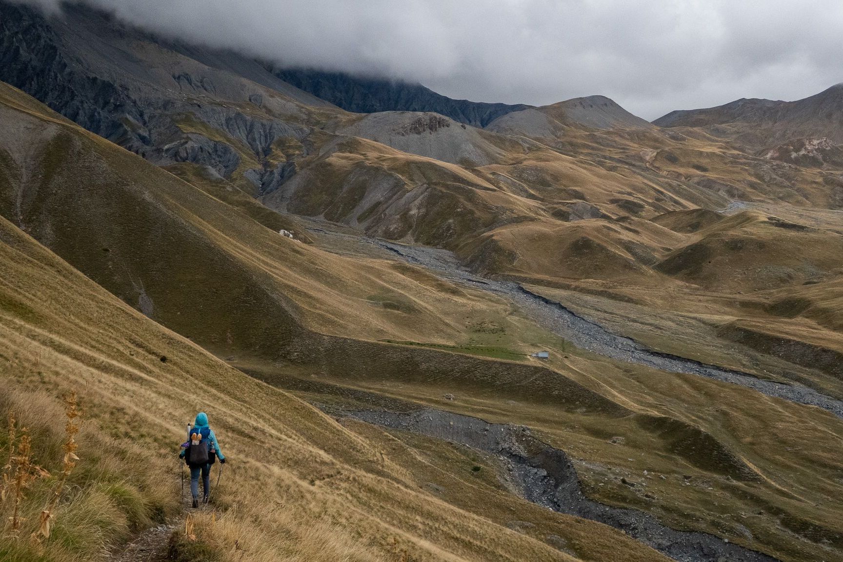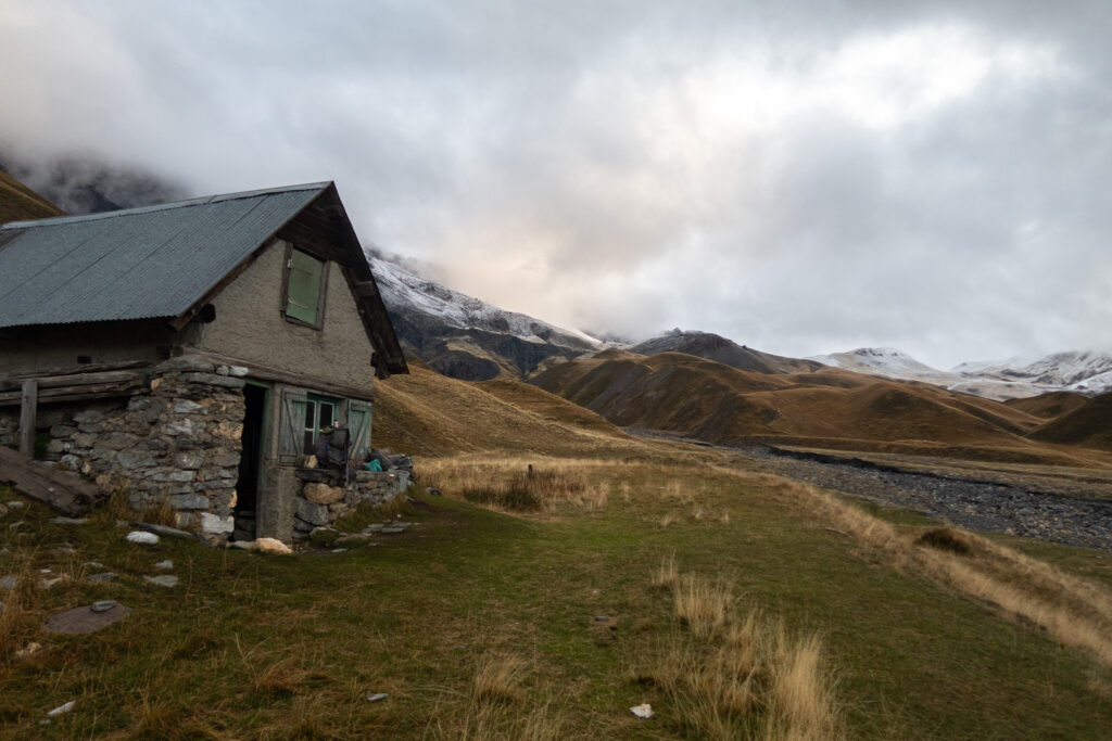 Klesáme 200 výškových metrov a dúfame, že útulňa, ktorá je vyznačená na mape už bude prázdna (normálne ju obýva pastier). Pred útulňou filtrujeme 4 l vody z potoka. Domček je prázdny. Ovce museli odviesť len pred pár dní predtým. Nie je to žiadna výhra, ale lepšie ako vonku. Hlásia dnes najchladnejšiu noc a aj nejaké zrážky.