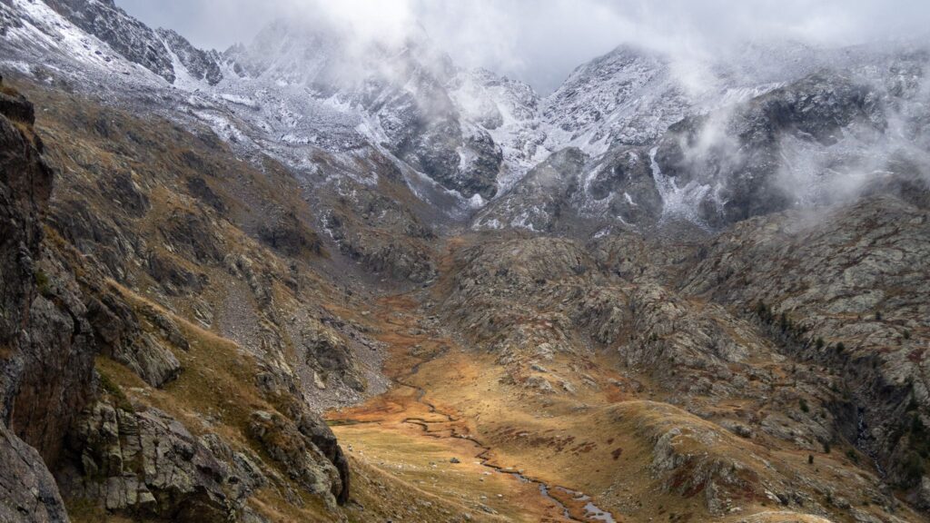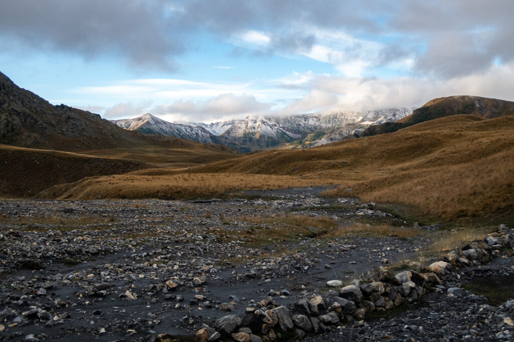 Smerujeme do sedla Col de Pouriac (2506 m.n.m.). Najprv ideme cez dolinu a korytá riek. Asi tu boli poriadne dažde tento rok, lebo tam kde mal byť chodník, sú navaľané kamene.