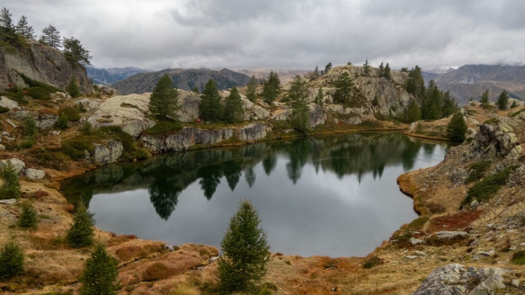 Schádzame ku chate a pozorujeme svištiu rodinku. Ideme sa pozrieť do chaty a div sa svete, je otvorená. Vnútri sú tri ženy a tepľúčko. Máme trochu mokré topánky, tak sa na chvíľu zastavíme. Prezujeme sa do crocsov a pýtam sa čašníčky či majú polievku. Najprv povie, že nie, tak sa pýtam na palacinky. Vraví, že sa ide spýtať. Tak nakoniec majú aj tú polievku Moc jej to po anglicky nejde, tak náhodne hovoríme veci, ktoré by mohli byť v polievke. Nejaká zeleninová, tak si ju dáme a kávičku k tomu. Je to taká hustá polievka zo šošovice s indickým nádychom. Do dnešného chladného počasia nám veľmi padla vhod. Kuchár vyzerá dosť drsne a púšťa si tu nejaké elektro. Prekvapivo to celé dokopy ladí a pasuje k tejto punkerskej horskej chate. Hádame cenu polievky, ja vravím, že 5 €, Jozef si myslí, že 8 €. Nakoniec platím 13€ za 2 polievky a 2 kávy. To je super cena. Dosť sme sa tu zdržali, takže dnes asi nestihneme prísť na miesto, ktoré som mala naplánované. Schádzame okolo jazera a pozorujeme ďalšie svište. Dnes ich je veľa, to sa nám páči. Lacs de Vens je kaskáda 5 veľkých jazier. Je to tu krása a nikde ani nohy. Pravda, že je dnes zamračené a dosť zima, ale aj tak by som na takomto mieste čakala viac ľudí.