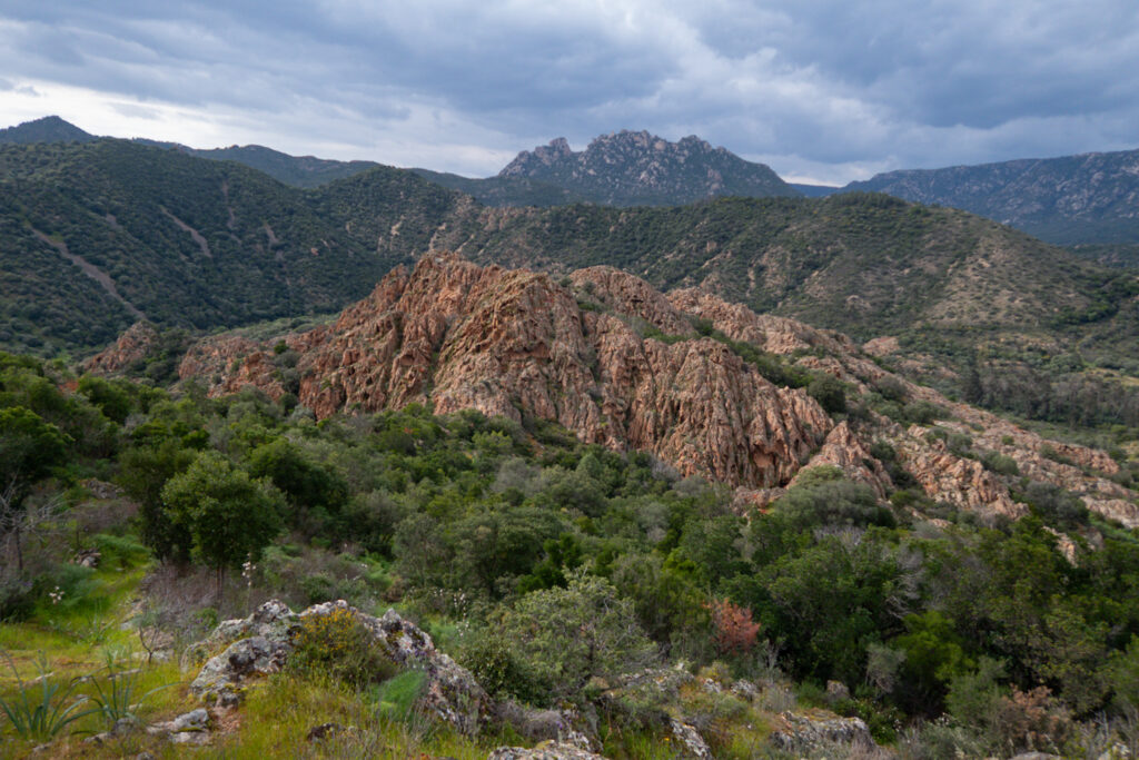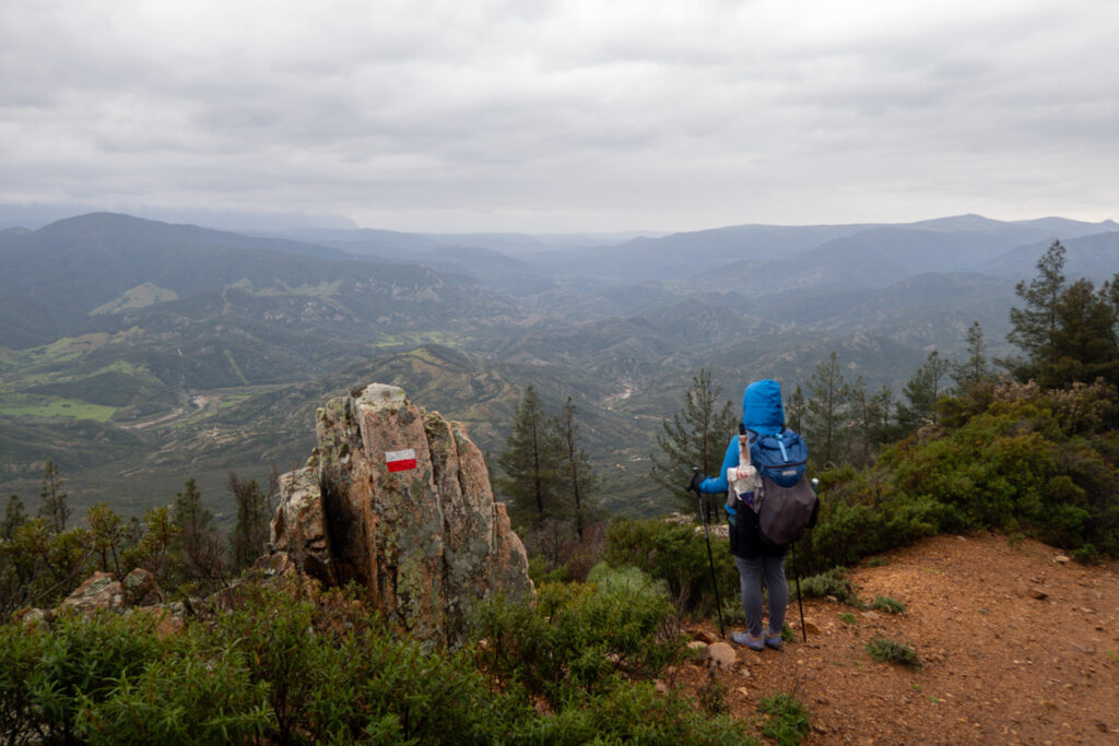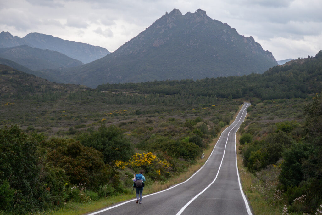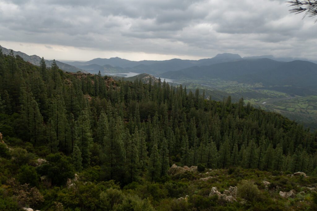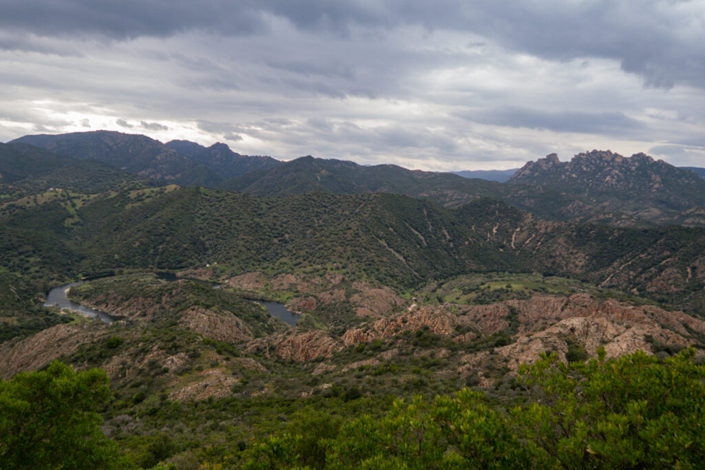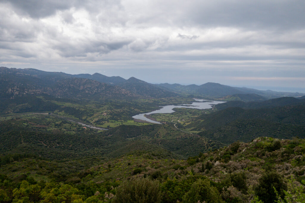 Našťastie sa za pár stoviek metrov napájame na asfaltovú cestu, ktorá vedie až na úplný vrch, lebo je tam pozorovateľňa požiarov. Z cesty sú výhľady na krásny meander rieky Riu Mannu di Bitti.