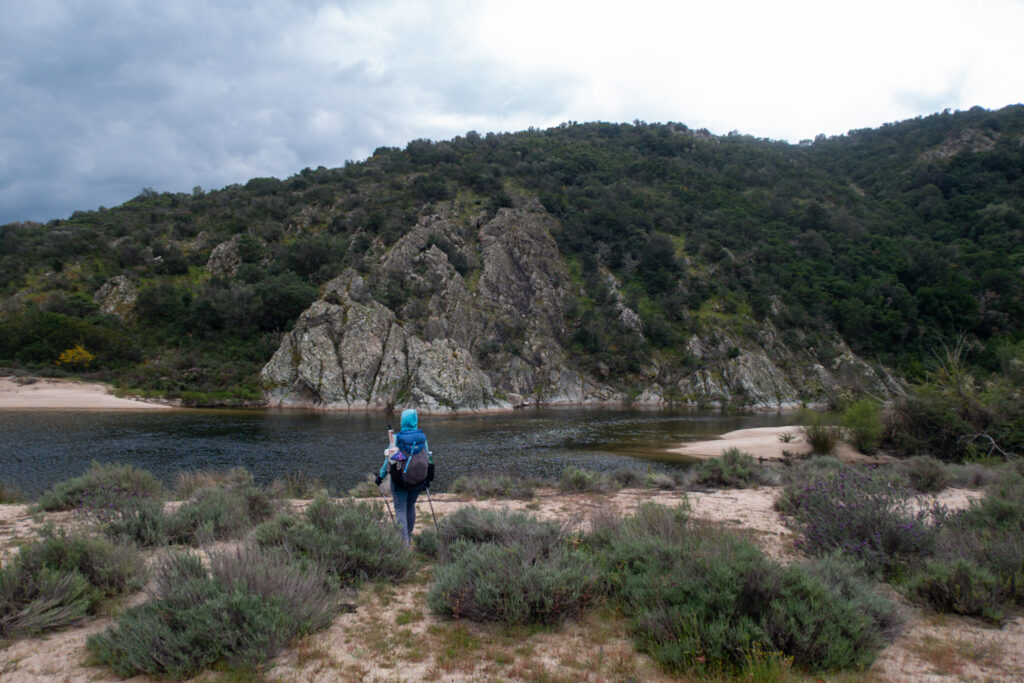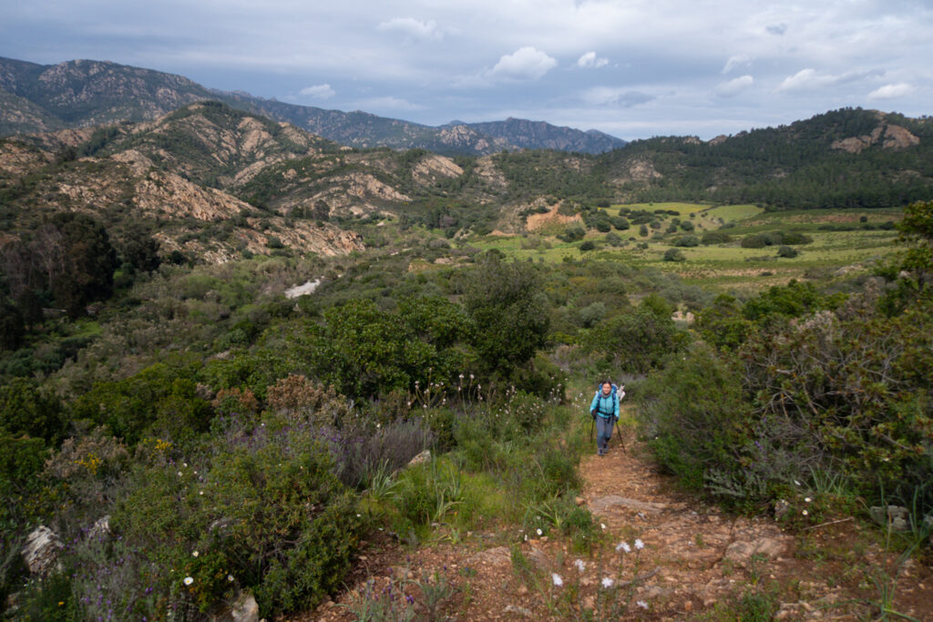 Zabočíme na trail, najprv po lesnej ceste, ktorá vedie až k rieke. Videla som na mape, že budeme musieť prejsť cez rieku, ale že sú na Sardínii až takéto veľké som nečakala.
